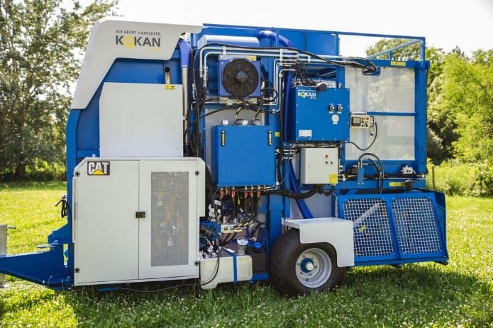 Причіпний ягіднозбиральний комбайн KOKAN Air Berry Harvester модель KOKAN 500 S з власним дизельним двигуном внутрішнього згорання та власною гідравлічною системою