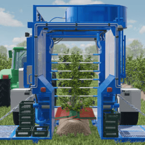 Гідравлічна система забезпечує незалежне вирівнювання комбайна та підйом на висоту до 50 см від землі. Параметри збору врожаю встановлюються на панелі управління, і можна налаштувати технологію збору врожаю для різних видів ягід, схем посадки та умов.